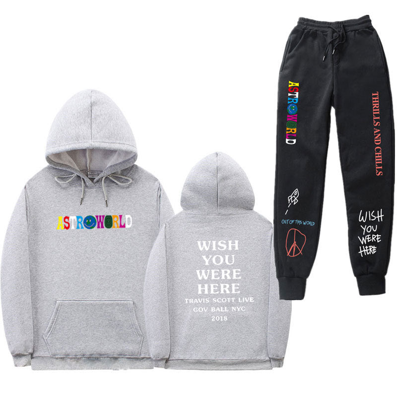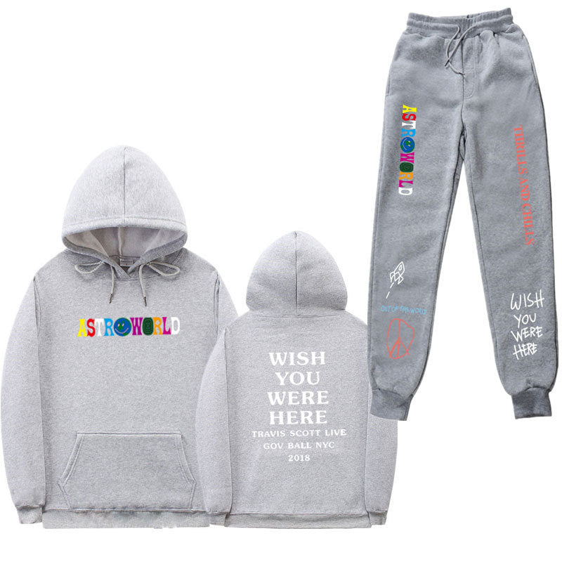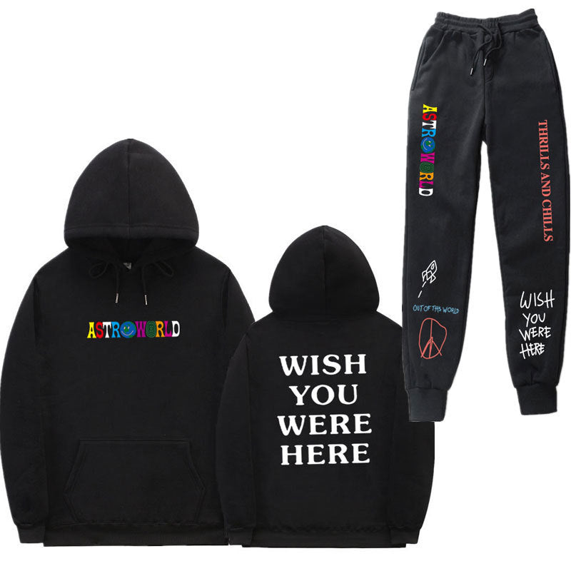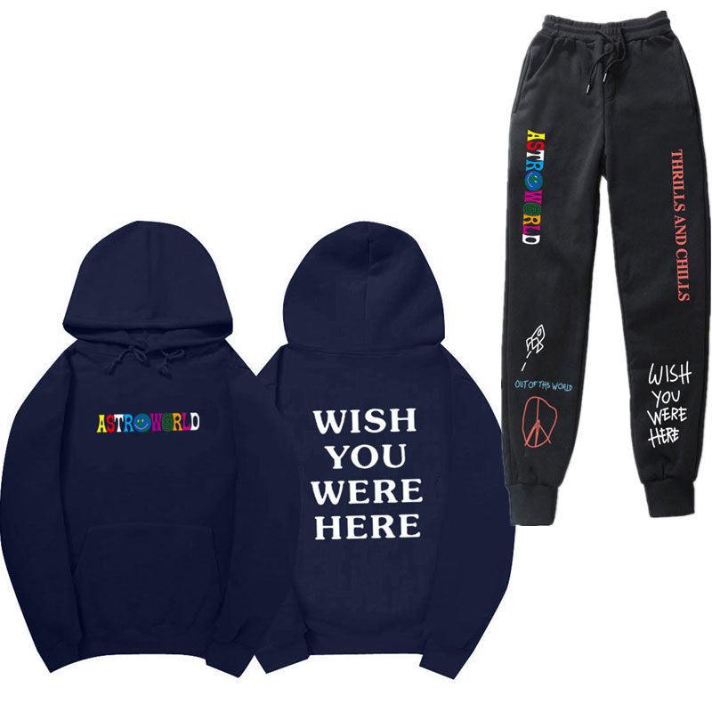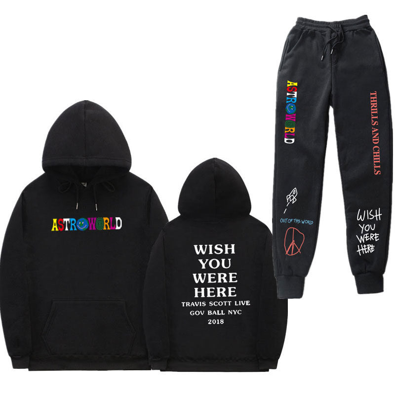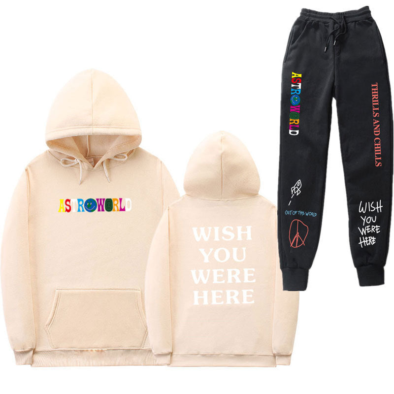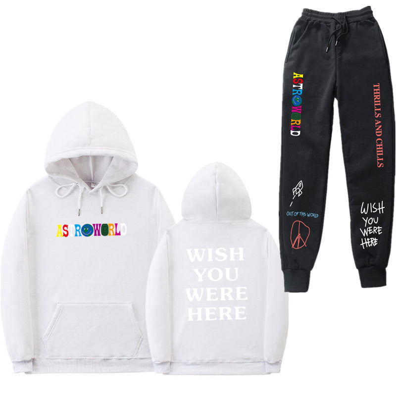 Travis Scott Astroworld Hoodie & Pant 2 Piece Set Sweatshirt Suit Men and Women Sports Suit