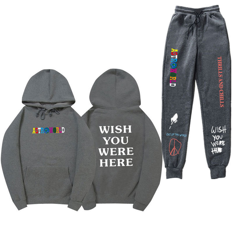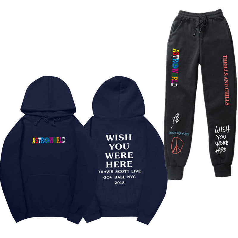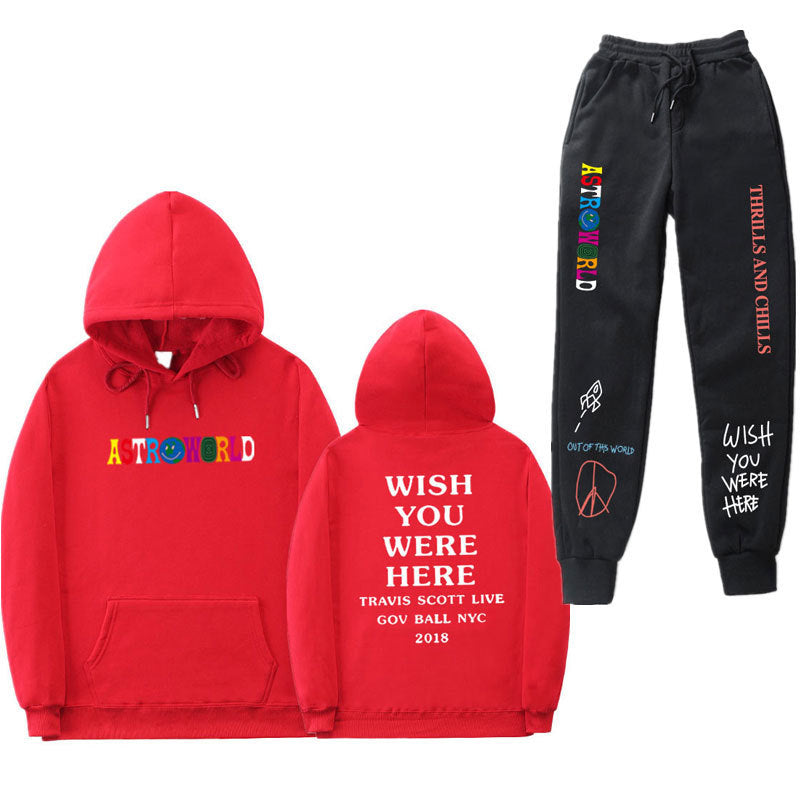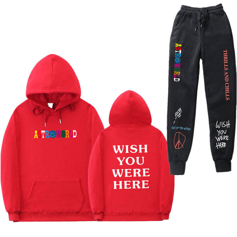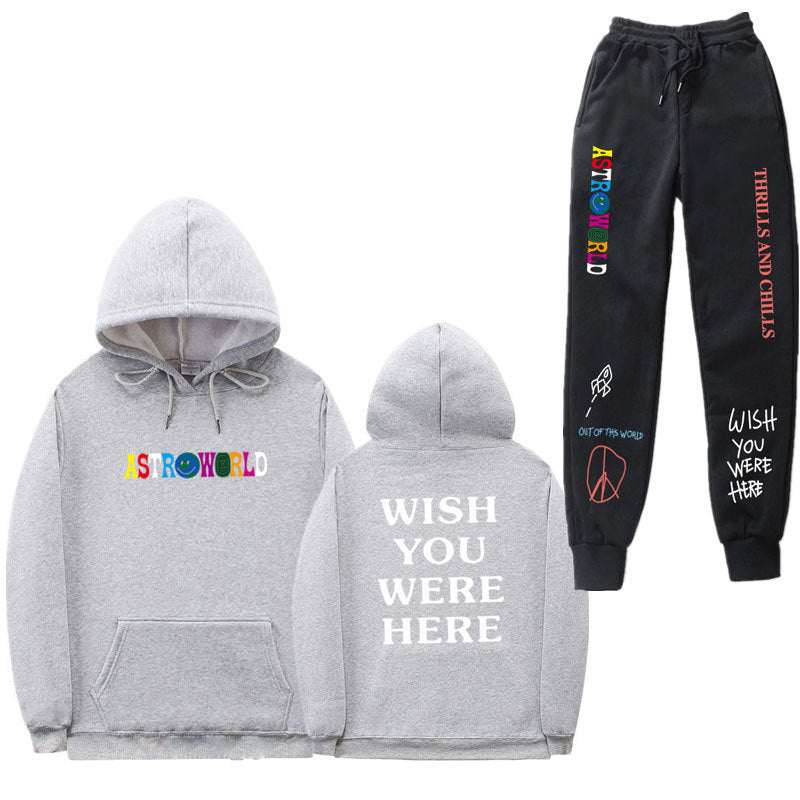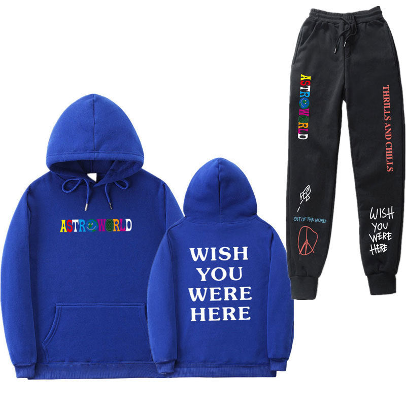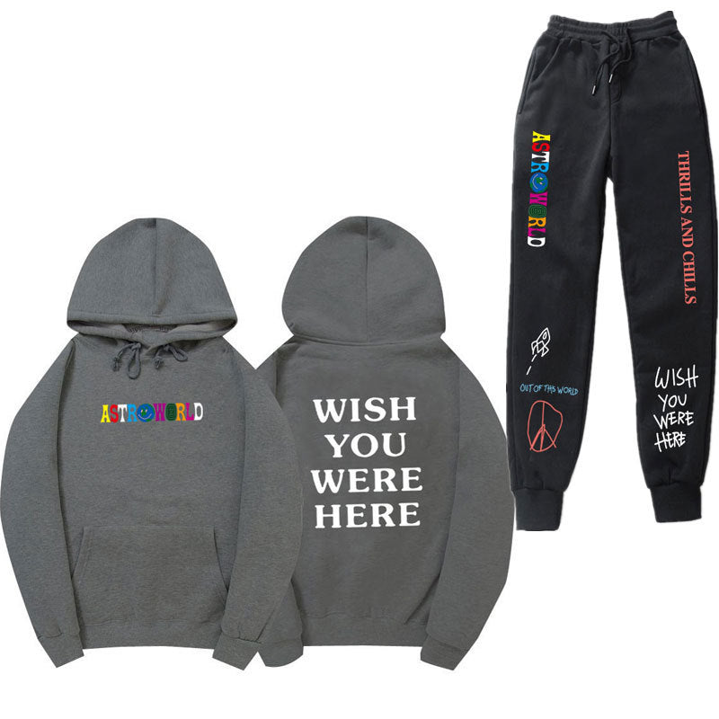 Travis Scott Astroworld Hoodie & Pant 2 Piece Set Sweatshirt Suit Men and Women Sports Suit