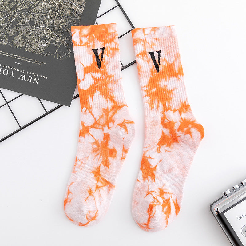 V Lone Socks Black Orange Big V Socks Middle Tube Cotton Socks Athletic Socks