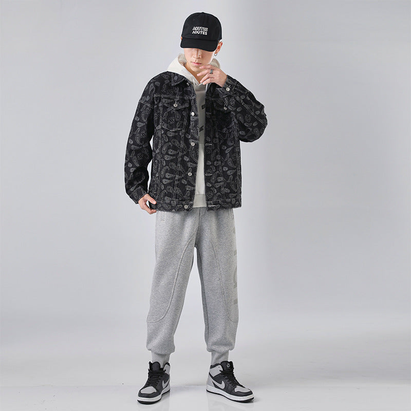 Paisley Denim Jacket Autumn and Winter Boys Denim Jacket Coat Printed Jacket