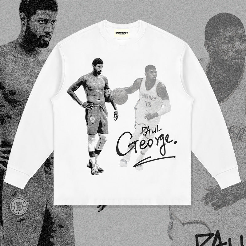 Paul George Shirt Small Neckline Long Sleeve T-shirt Chalk Loose Shoulder Pure Cotton