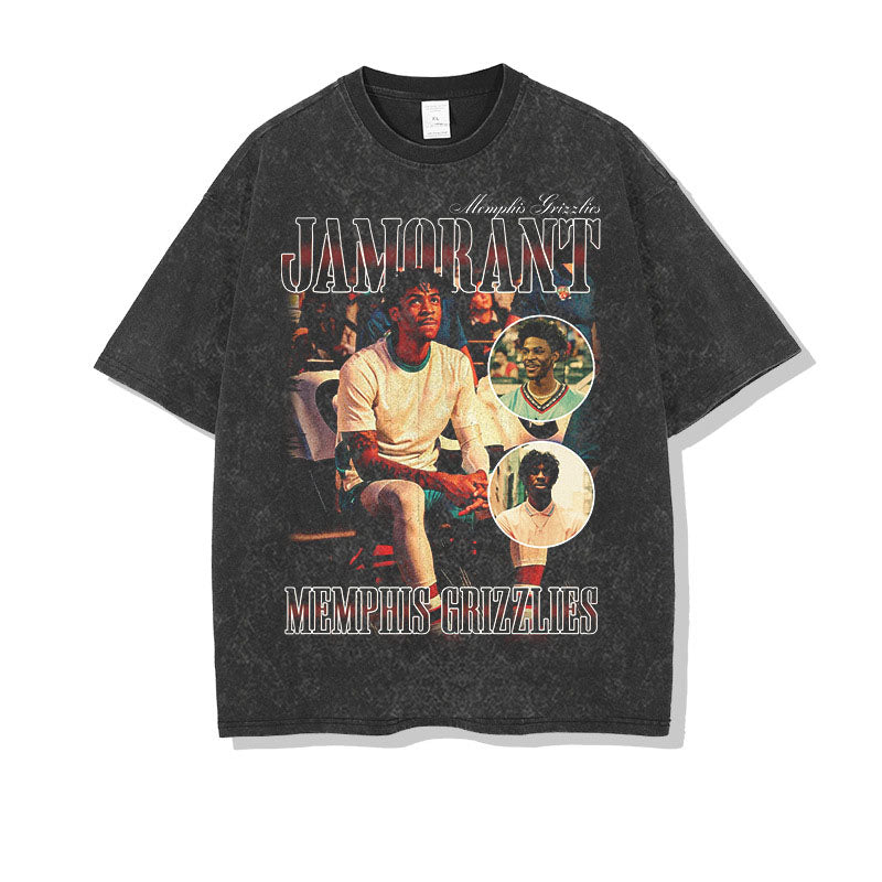 JA Morant Shirt JA Morant Printed Short-Sleeved T-shirt Heavy Cotton Vintage Distressed Sports