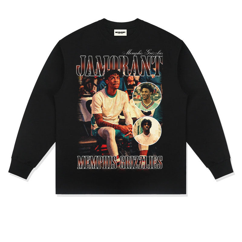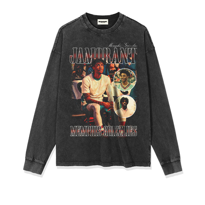 JA Morant Shirt JA Morant Distressed Long-Sleeved T-shirt Vintage Cotton Round Neck Sports
