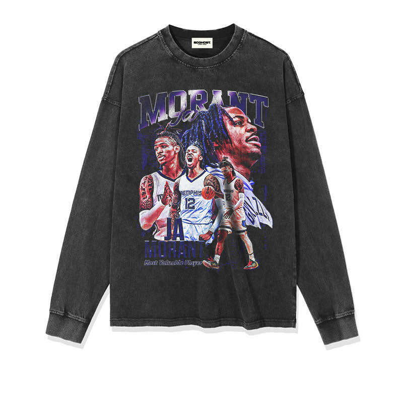 JA Morant Shirt JA Morant Printed Long-Sleeved T-shirt Loose Cotton Sports Vintage