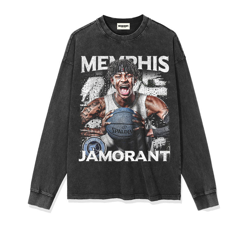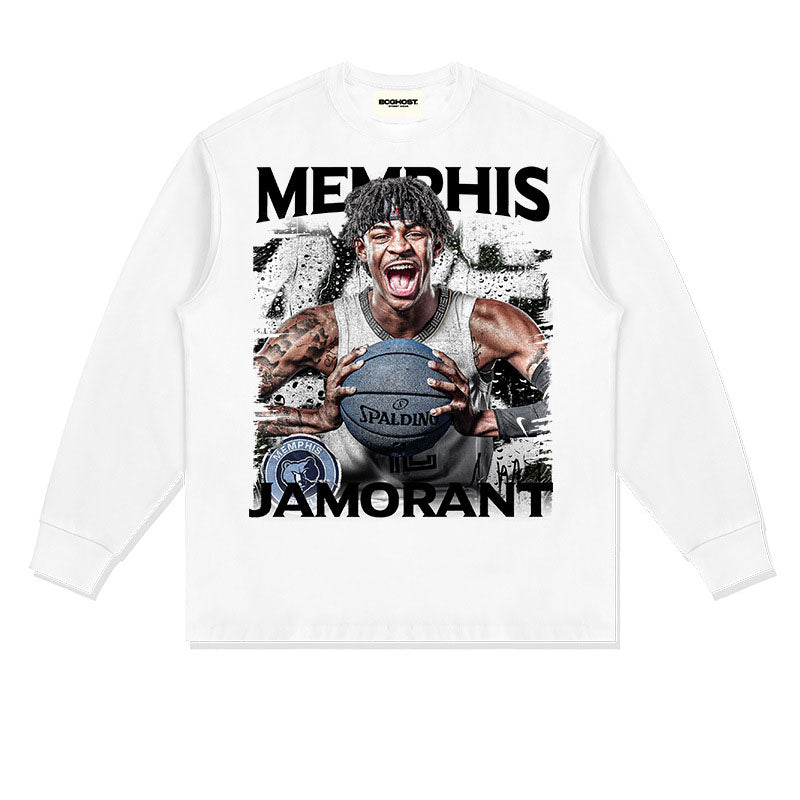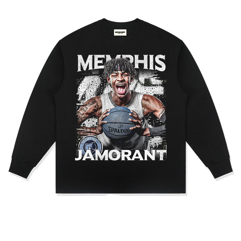 JA Morant Shirt JA Morant Printed Long-Sleeved T-shirt Cotton round Neck Vintage Sports