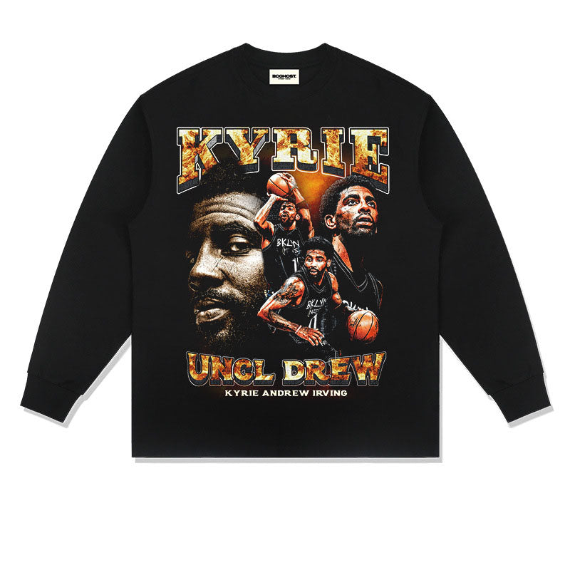 Kyrie Irving Shirt Kyrie Irving Printed Long-Sleeved T-shirt Distressed Heavy round Neck Sports