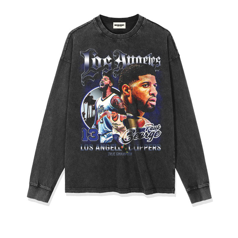 Paul George Shirt Paul George Printed Long-Sleeved T-shirt Loose Heavy Distressed Vintage