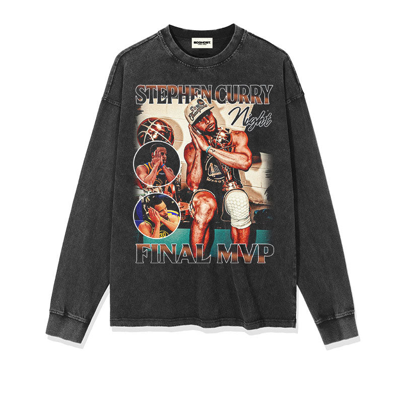 Stephen Curry Shirt Stephen Curry Good Night Printed Distressed Long Sleeve T-shirt Loose Heavy round Neck