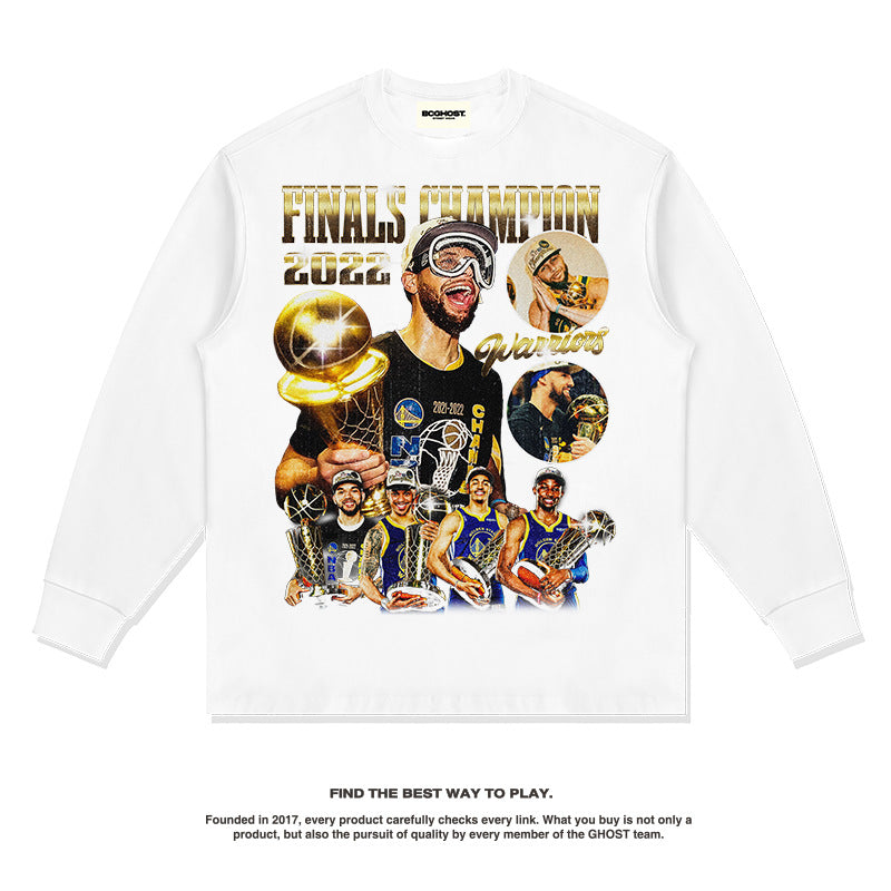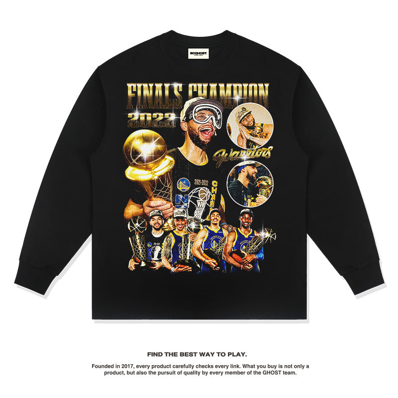 Stephen Curry Shirt Curry Crown Series Printed Long-Sleeved T-shirt Loose Heavy round Neck