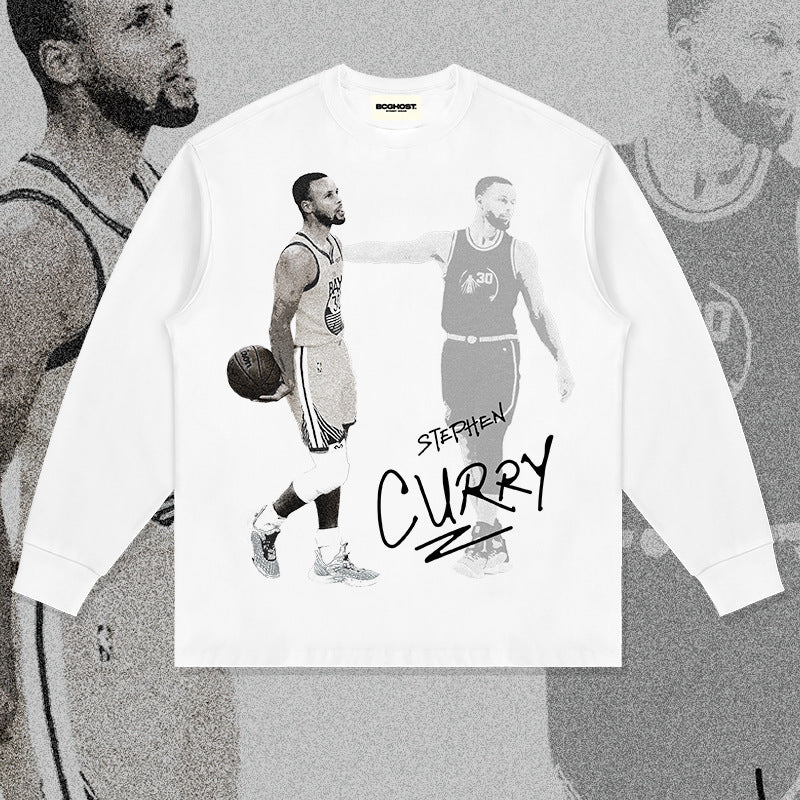 Stephen Curry Shirt Curry Basketball Star Print Pattern Long Sleeve T-shirt Small Neckline Pure Cotton