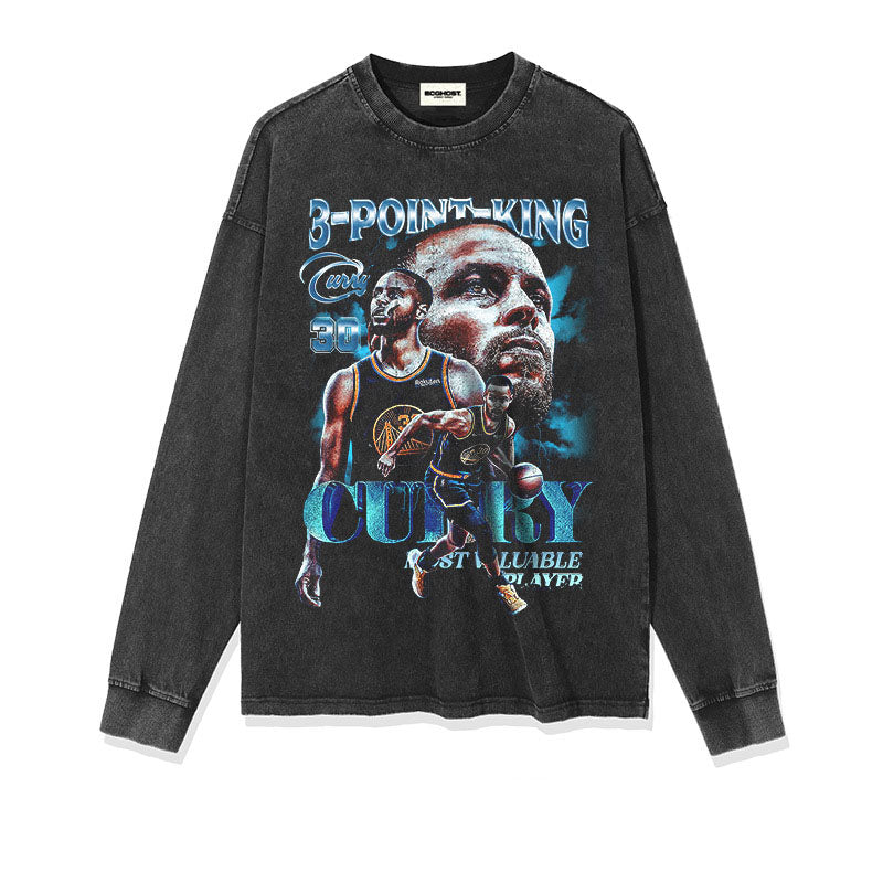 Stephen Curry Shirt Curry Printed Long-Sleeved T-shirt Loose Heavy Distressed