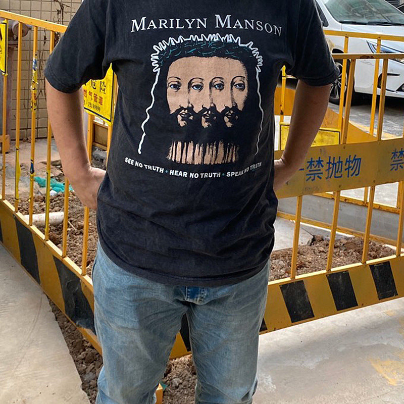 Marilyn Manson T Shirt Fog Vintage Loose Men's and Women's Short-Sleeved T-shirt
