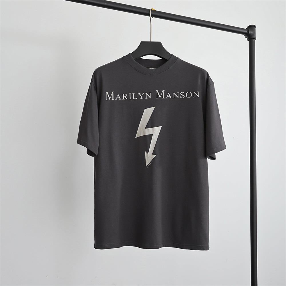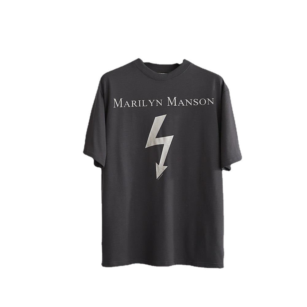 Marilyn Manson T Shirt Vintage Vintage Lightning Print Short Sleeve Loose Casual Men and Women