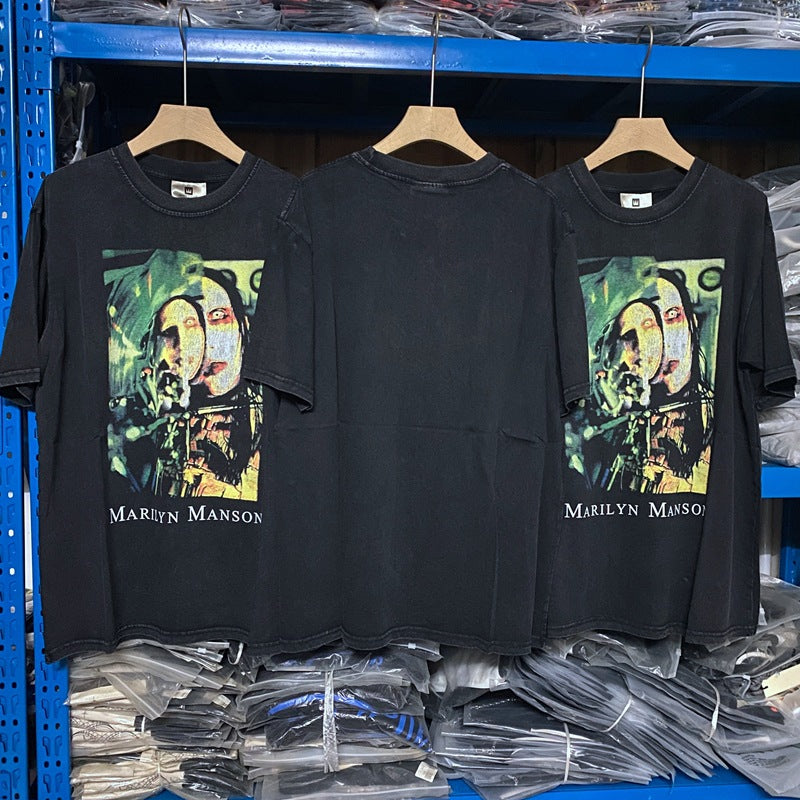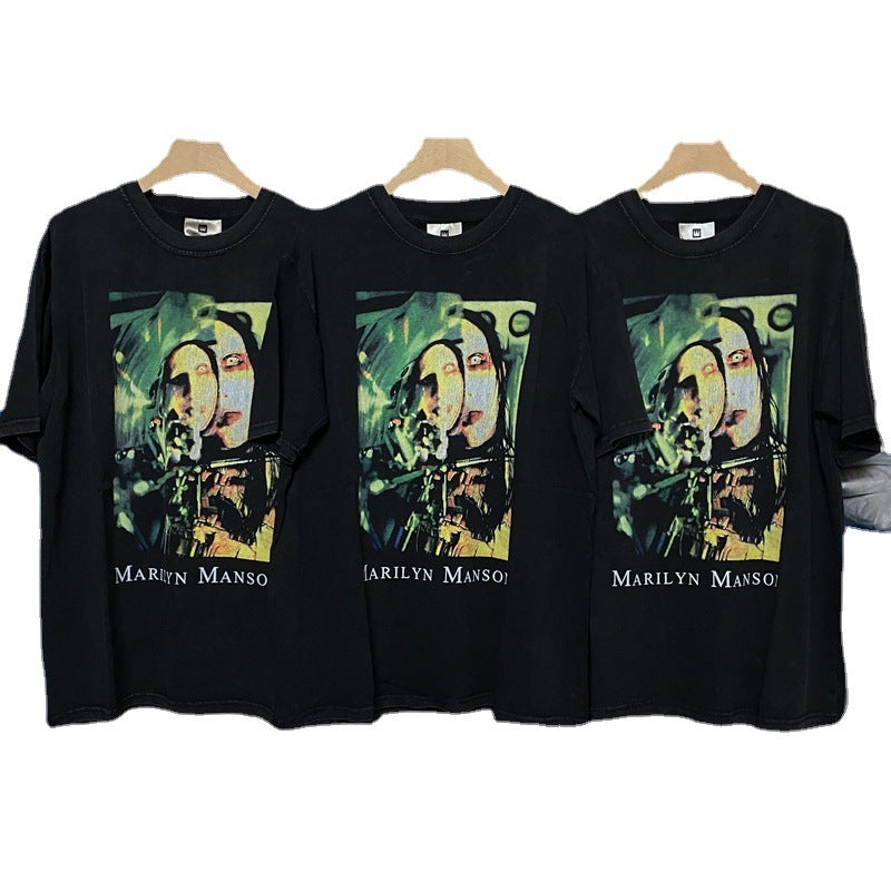 Marilyn Manson T Shirt Printed Short Sleeve Retro Distressed Loose Men's and Women's T-shirt