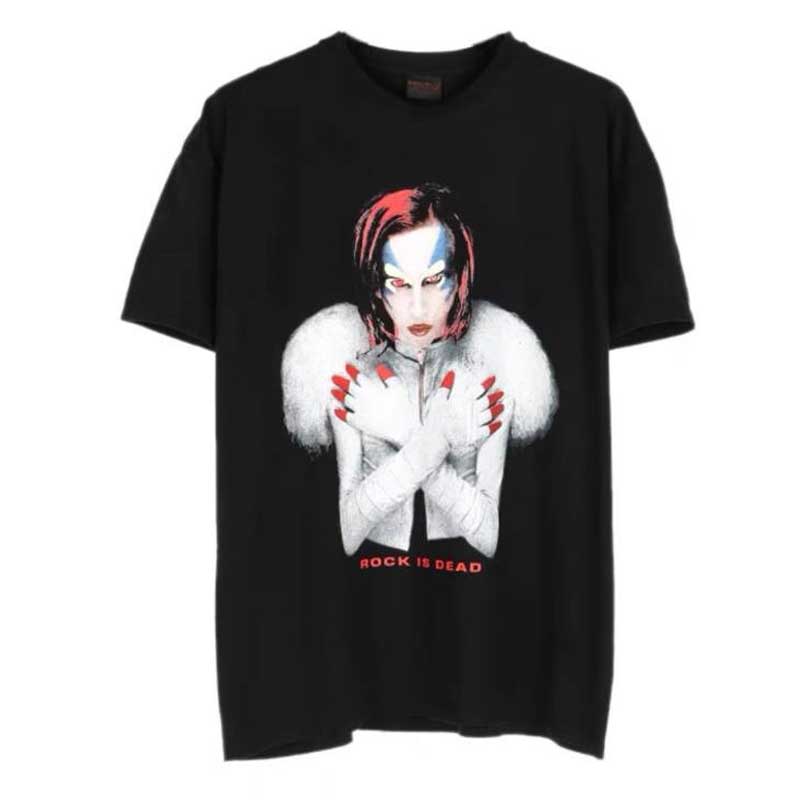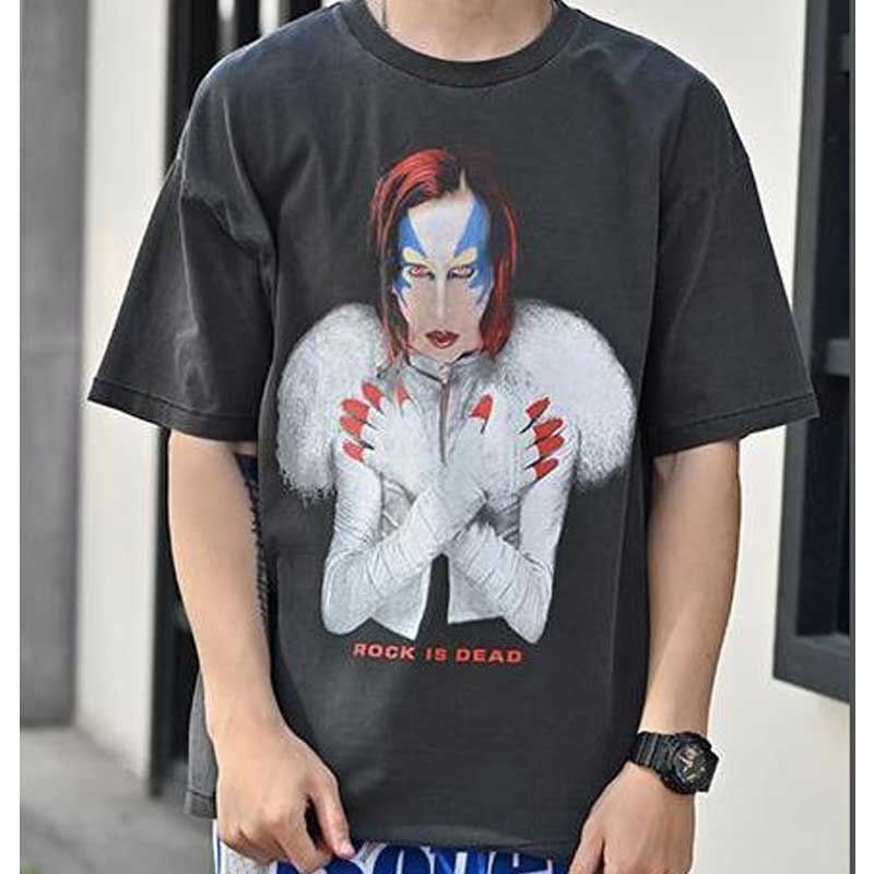 Marilyn Manson T Shirt Vintage Tee Vintage Print Distressed Short Sleeve T-shirt