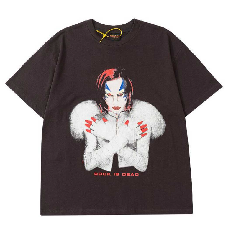 Marilyn Manson T Shirt Vintage Distressed Printed Short Sleeve T-shirt Flow Heavy Vintage Tee