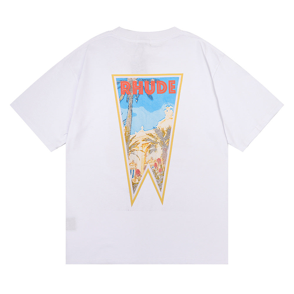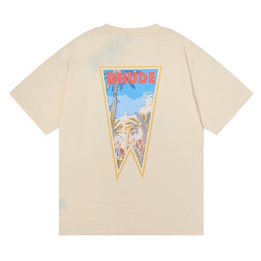 Rhude T Shirt Oil Painting Coconut Tree Printed Pure Cotton Hip Hop Men and Women Casual
