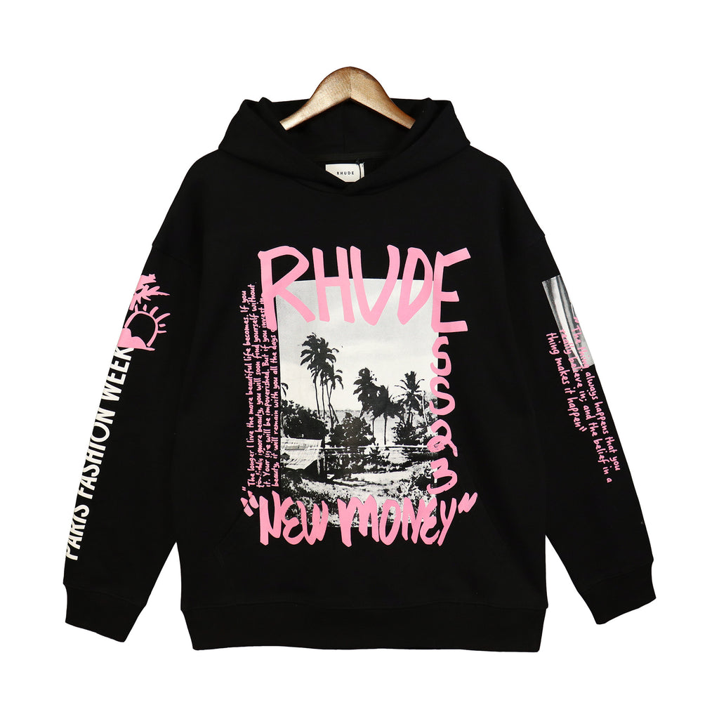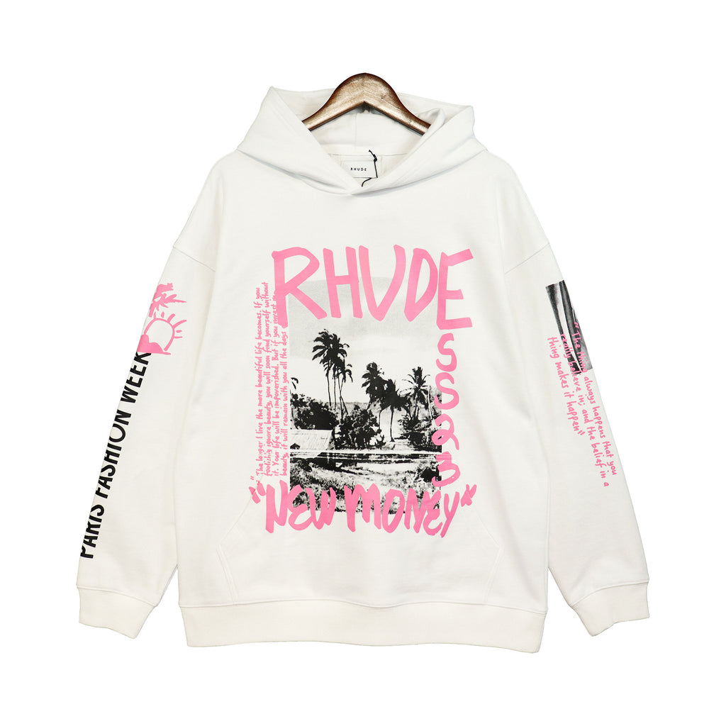 Rhude Hoodie Vintage Retro Style Personality Printed Hip Hop Loose Couple Hooded Sweater