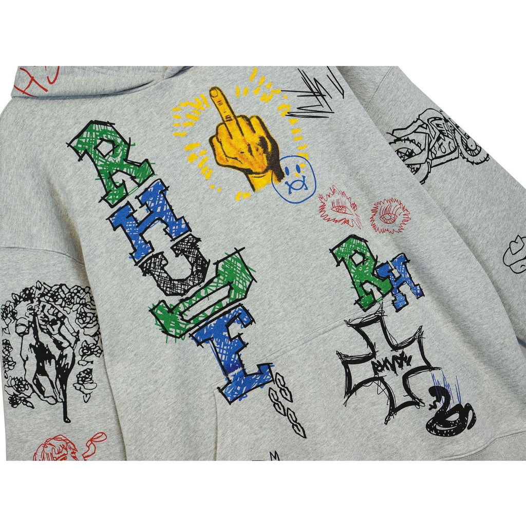 Rhude Hoodie Hand Painted Graffiti Printing Couple Hooded Sweater Hoodie