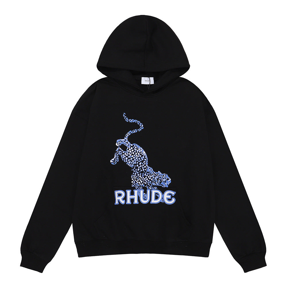 Rhude Hoodie Leopard Printed Cotton Men and Women Couple Hooded Sweater