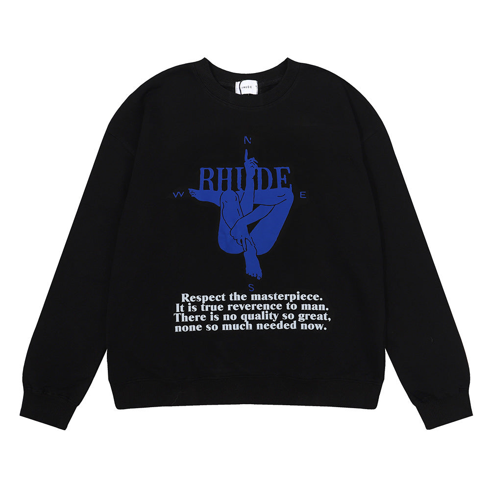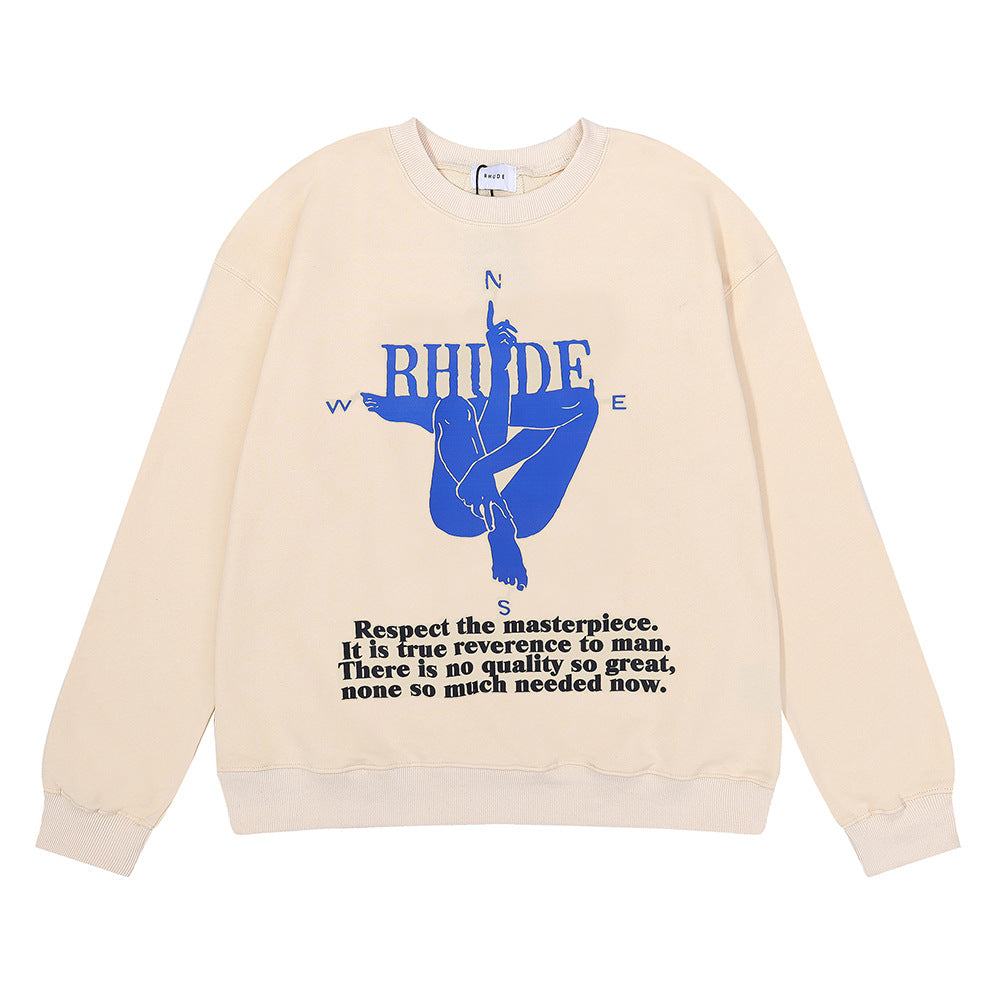 Rhude Hoodie Body Yoga Luo Yin Flower Disk Casual Men's and Women's round Neck Sweater