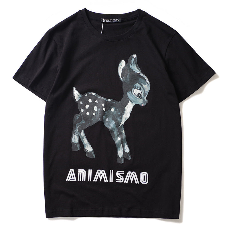 GVC T Shirt Deer Pattern Pure Cotton Loose Short Sleeve T-shirt Men