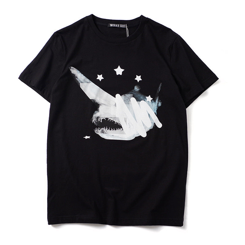 GVC T Shirt Shark Pattern Pure Cotton Loose Short Sleeve T-shirt Men