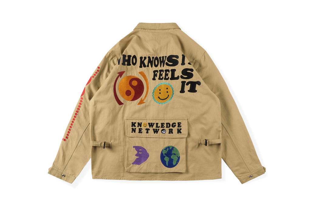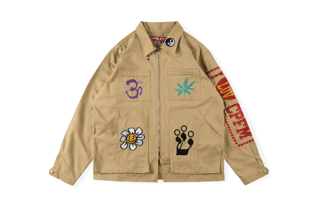 Saint Michael Baseball Jacket 22fw Hip Hop Big Talker Smiley Face Heavy Embroidery Loose