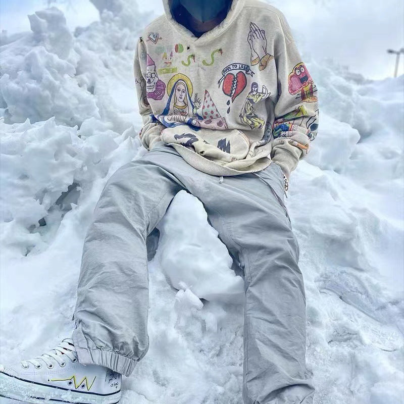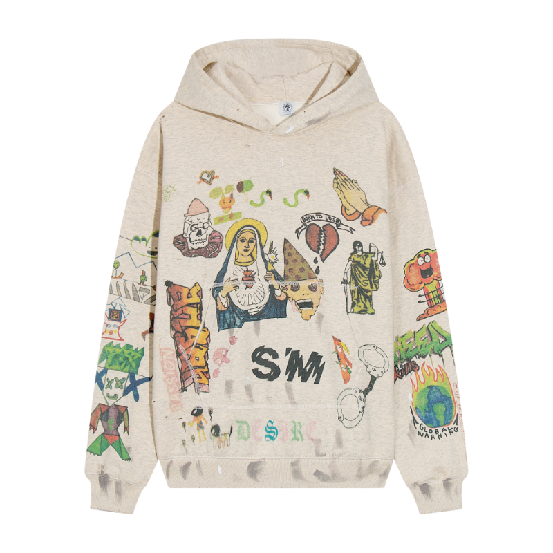 Saint Michael Hoodie Simpson Cartoon Vintage Graffiti Distressed Hooded Sweater Loose