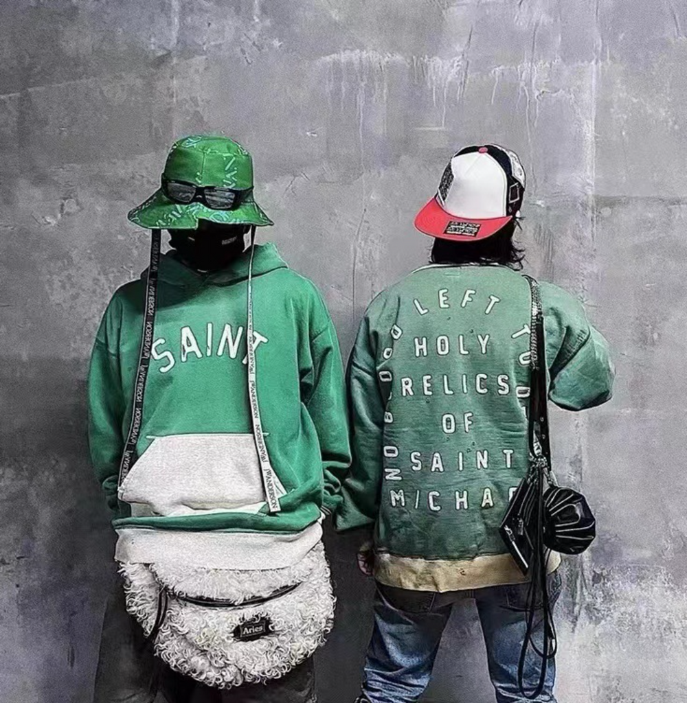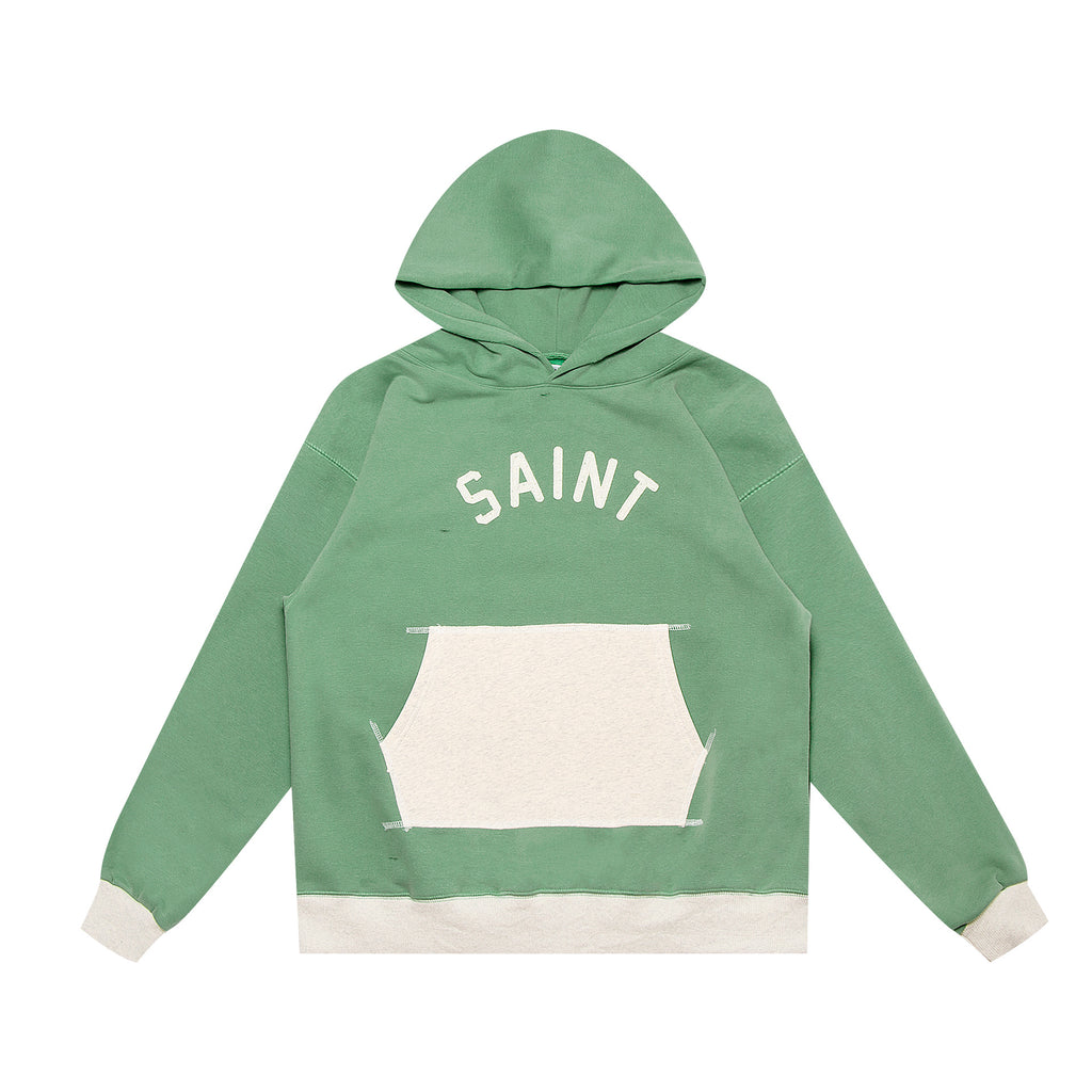 Saint Michael Hoodie Color Block Flocking Distressed Heavy Hoodie