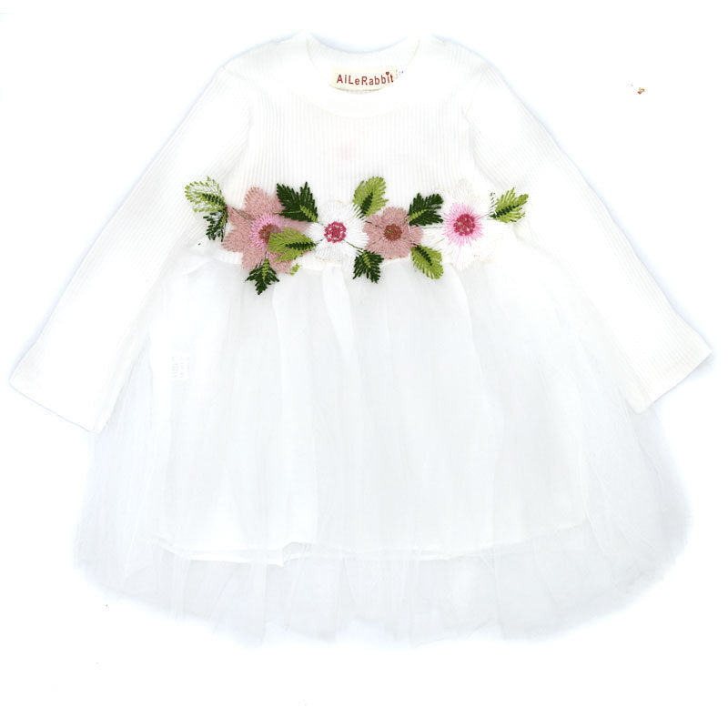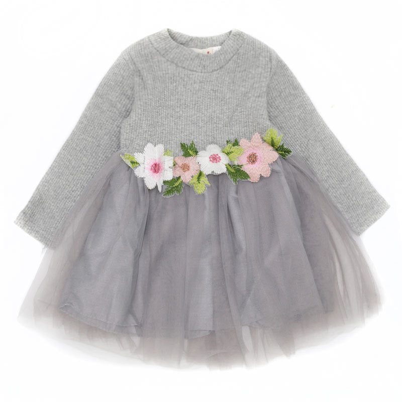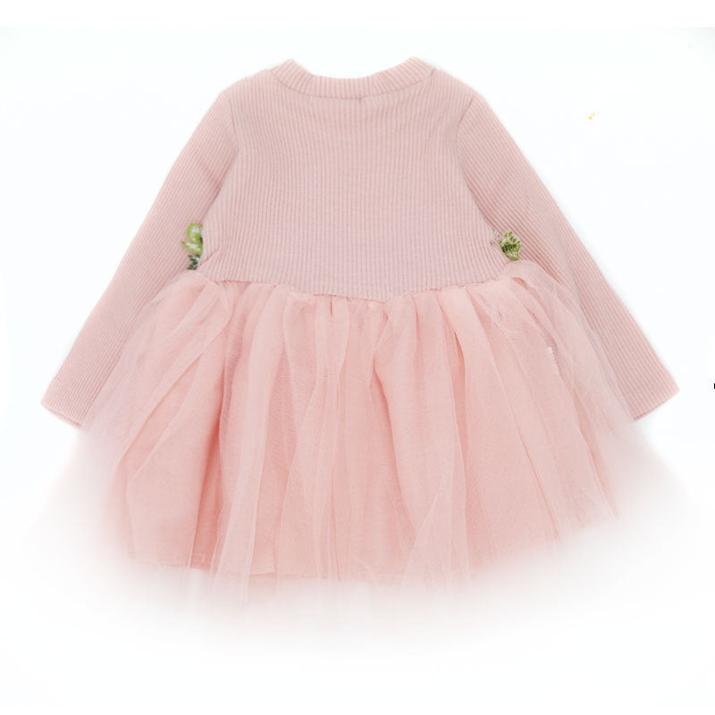 Girl Dress Stitching Bubble Knitted Long Sleeve Princess Dress