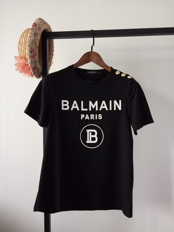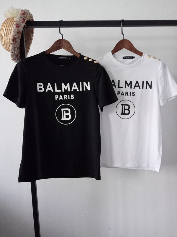 T Shirt Balmain Spring/Summer Cotton Printed Letter Short Sleeve T-shirt for Men and Women