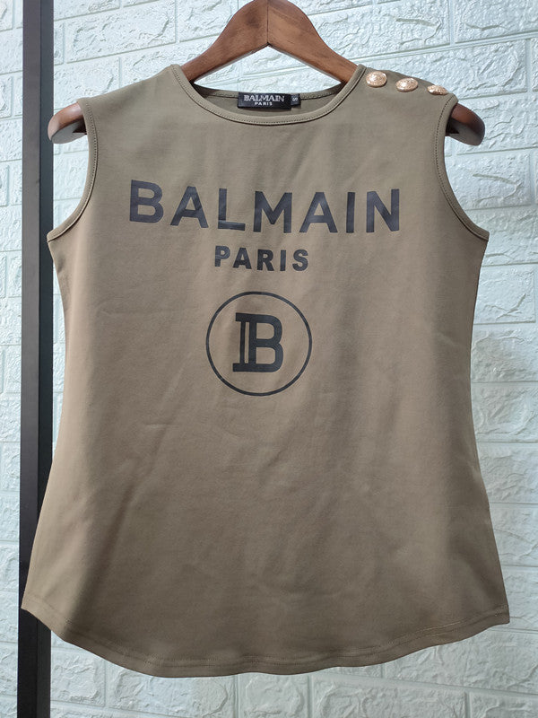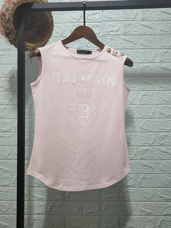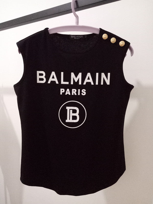 T Shirt Balmain Spring/Summer Printed Full Cotton Casual Sleeveless T-shirt