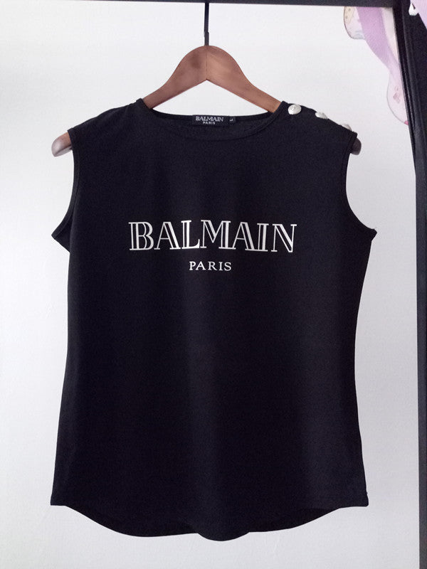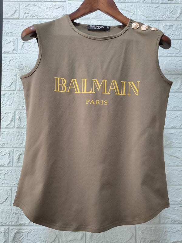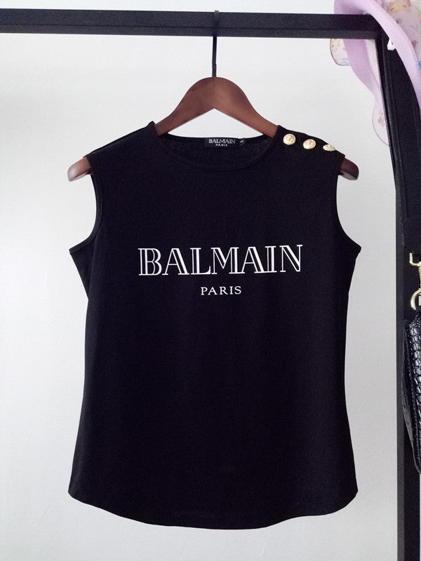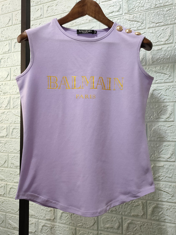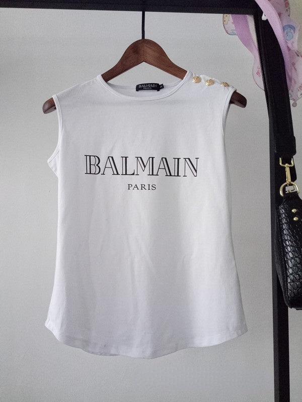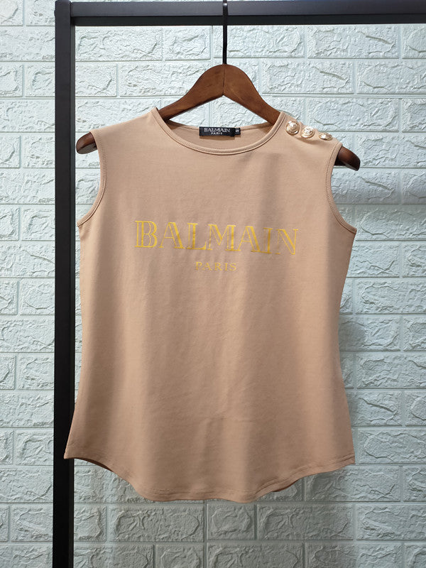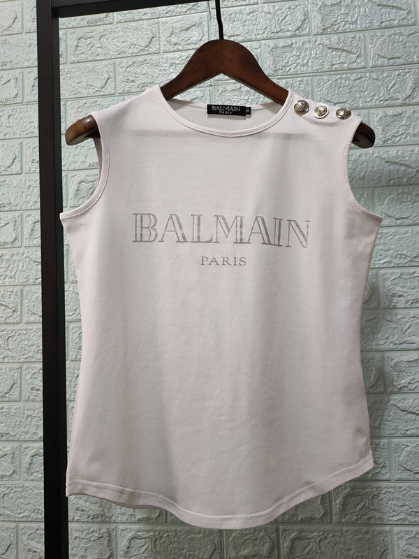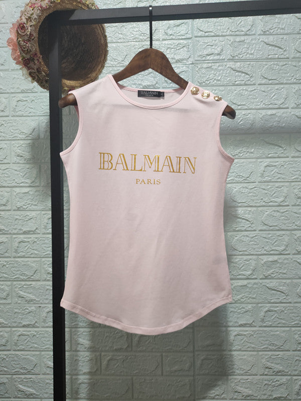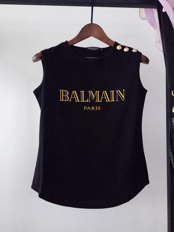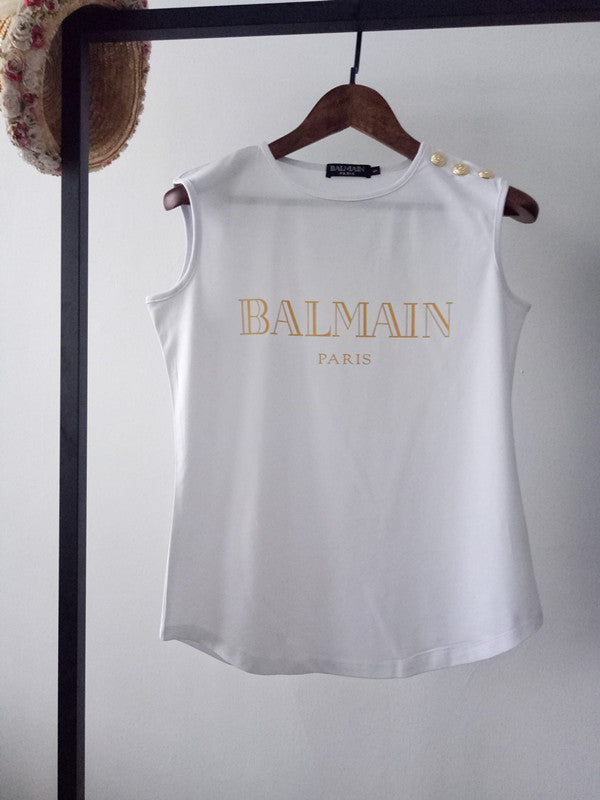 T Shirt Balmain Cotton Gold Hem Sleeveless Vest for Women