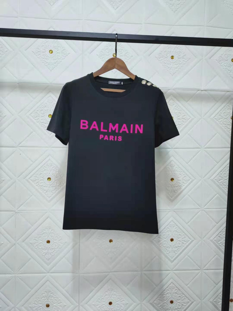 T Shirt Balmain Spring/Summer Three-Dimensional Flocking Letter Short Sleeve Cotton T-shirt