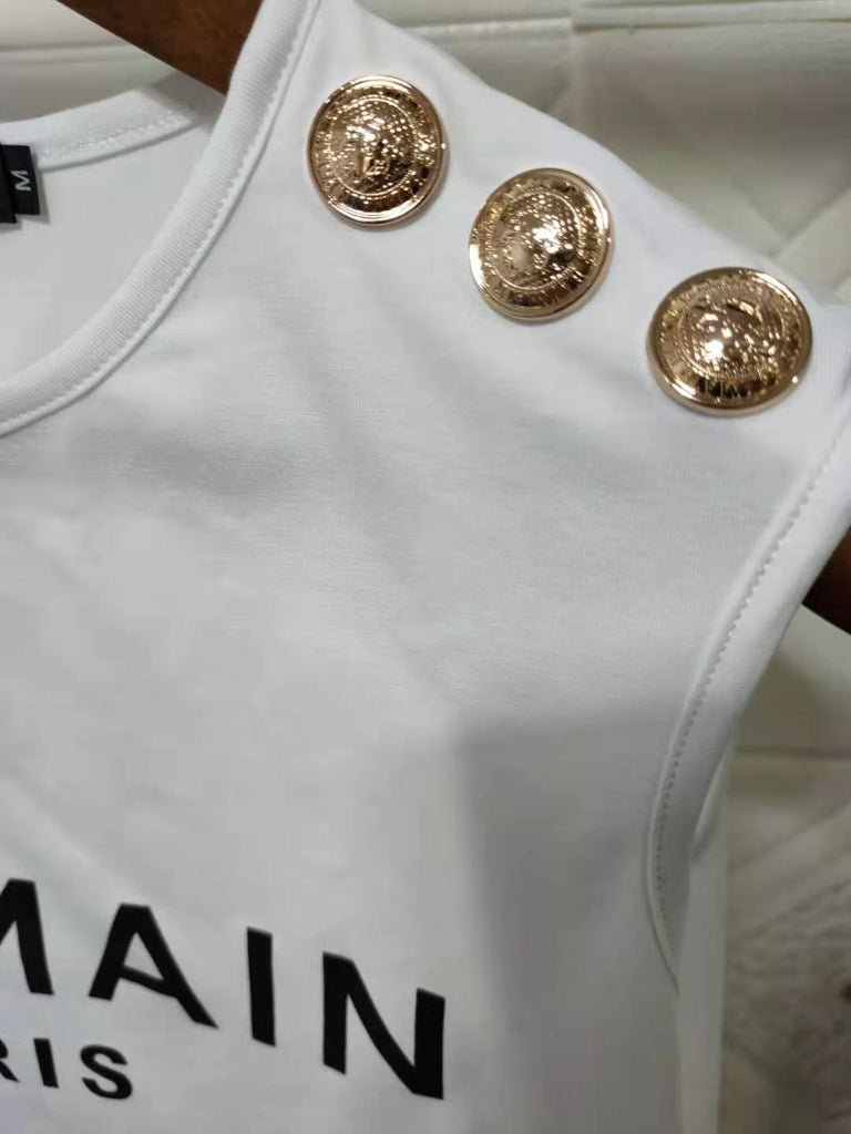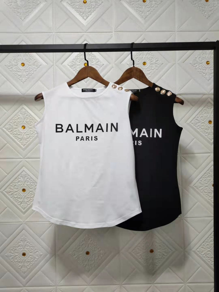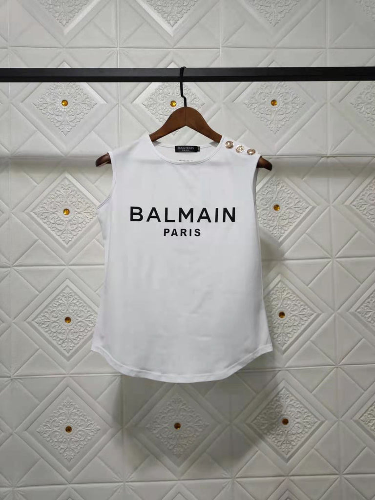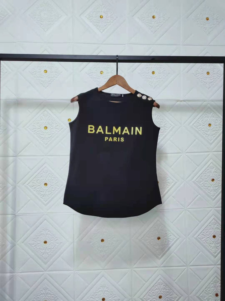T Shirt Balmain Spring/Summer Letter Cotton round Neck Sleeveless Vest T-shirt for Women