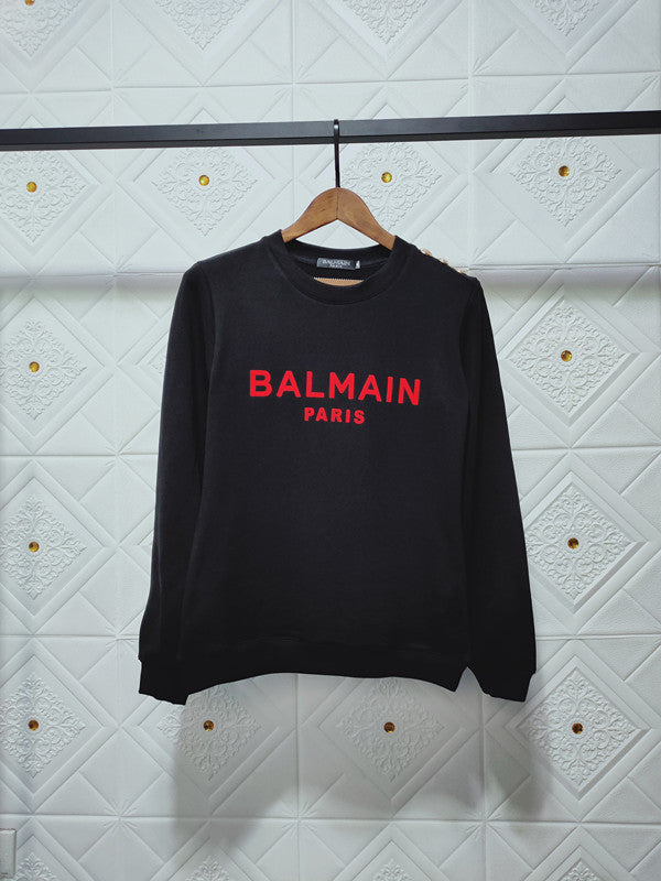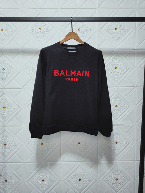 T Shirt Balmain Red Flocking Bold Letter Pure Cotton Long-Sleeved Sweatshirt