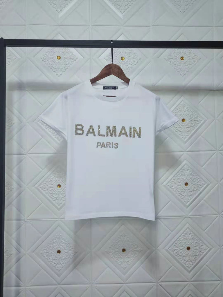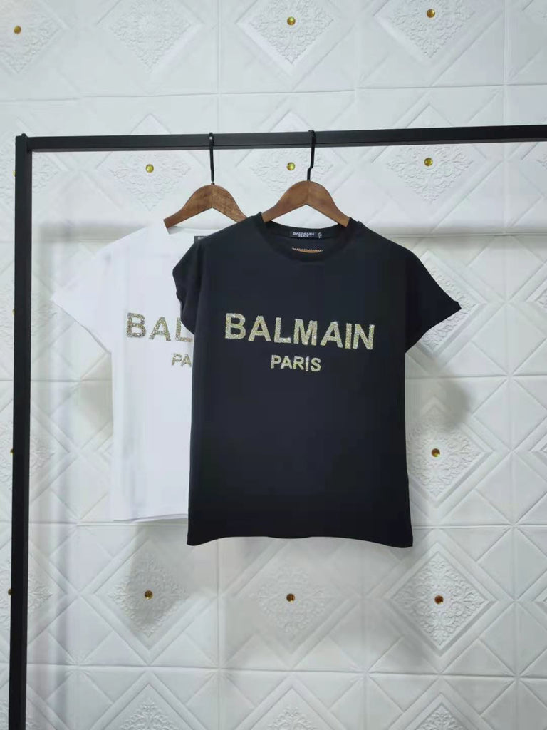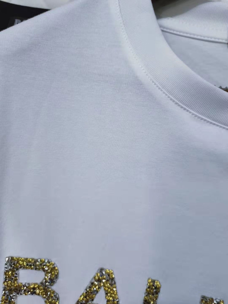 T Shirt Balmain Spring/Summer Heavy Embroidery Hot Drilling Short Sleeve Cotton round Neck Women's T-shirt
