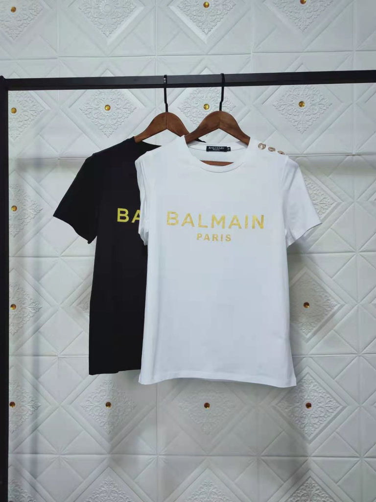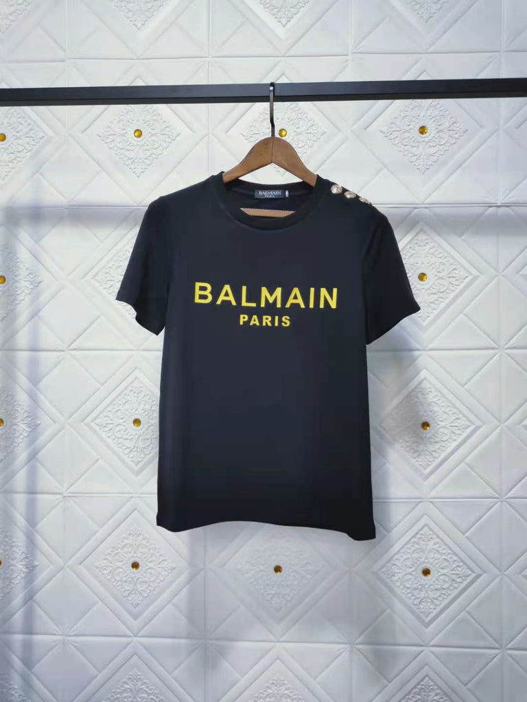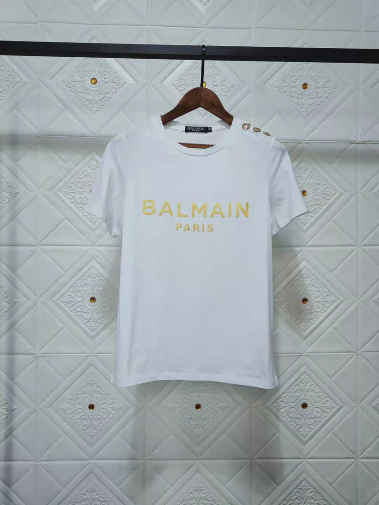 T Shirt Balmain Spring and Summer Gold Letter All Cotton Short Sleeve T-shirt