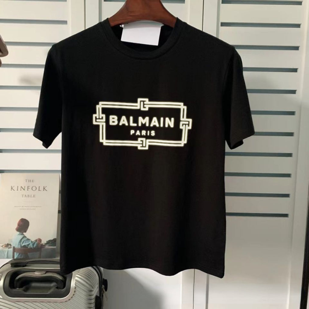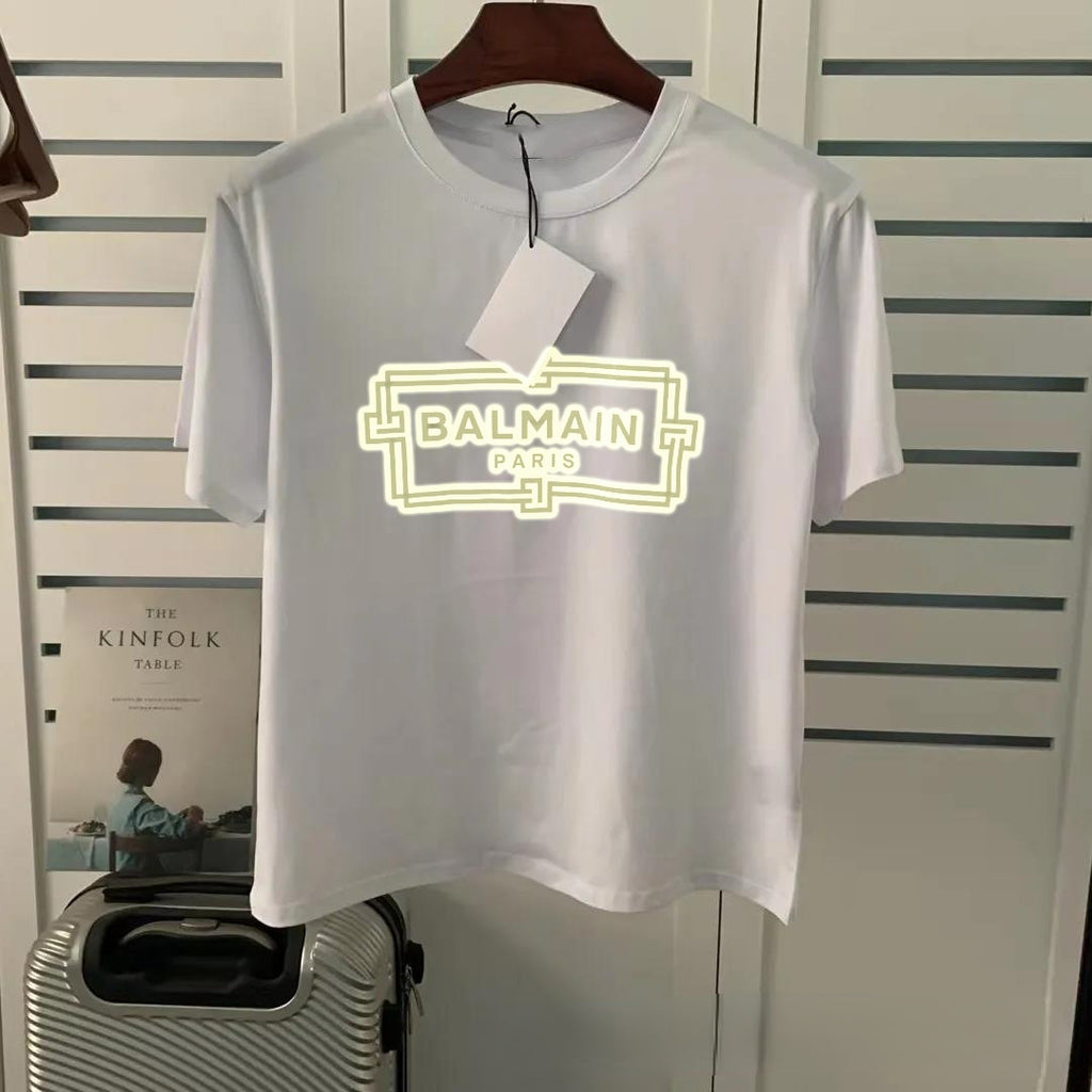 T Shirt Balmain Laser Reflective Letter Short Sleeve Parent-Child Suit Men's and Women's T-shirt Pure Cotton