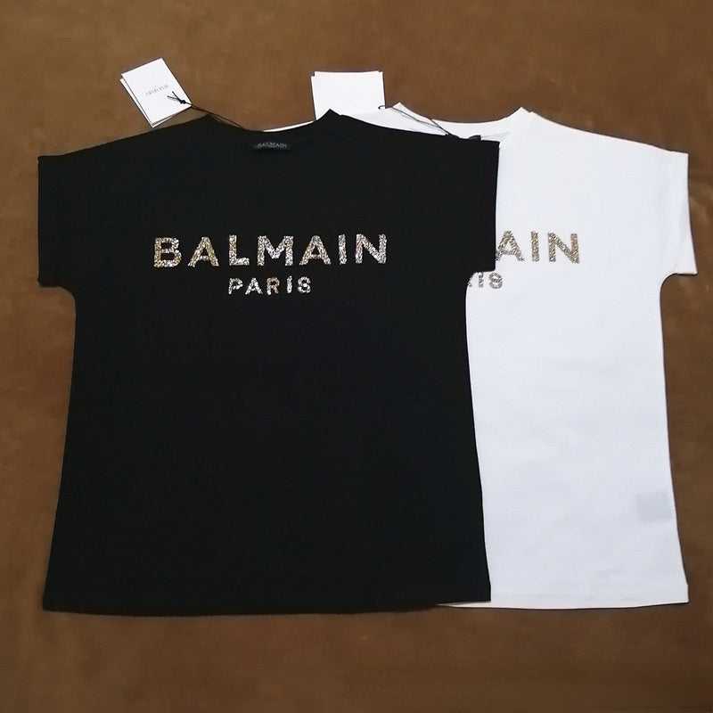 T Shirt Balmain Rhinestone Letter Straight T-shirt Women's Short Sleeve Sleeve