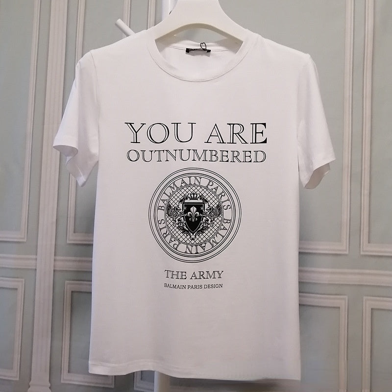 T Shirt Balmain Women's Balmain Short Sleeve Cotton Letters Loose Pullover T-shirt