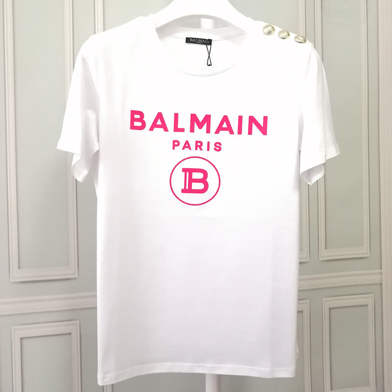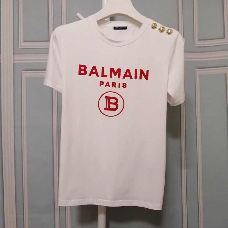 T Shirt Balmain Short Sleeve Half Sleeve Red Flocking Letters
