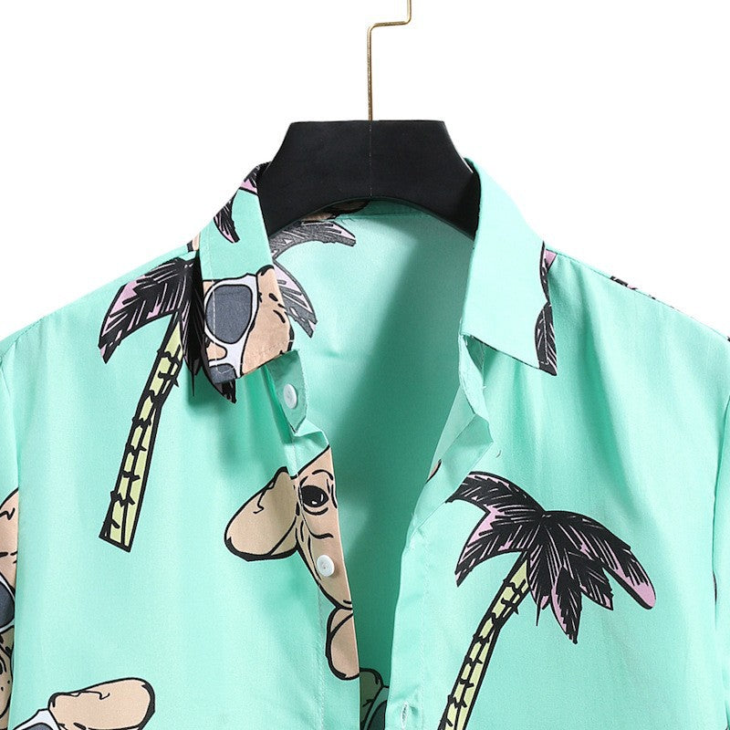 Men Hawaii Shirts Men's Light Green Short Sleeve Fashion Casual Shirt