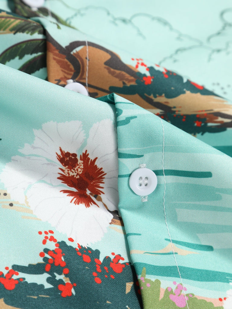 Men Hawaii Shirts Short-Sleeved Shirt Red Casual Summer Men's Shirt