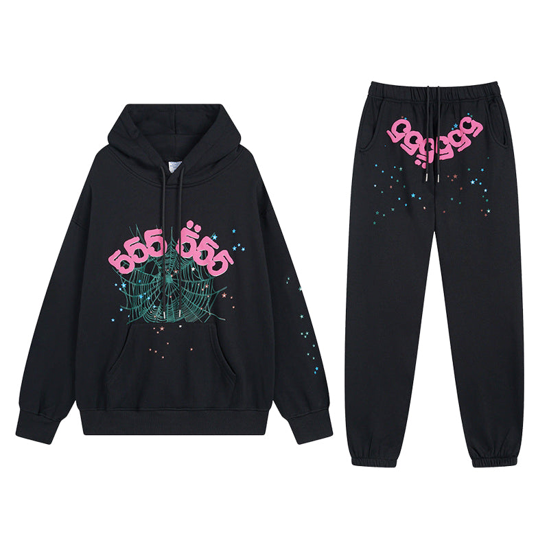Sp5der Hoodie & Sweatpants 2 Piece Set Spider Web Velvet Sport Suit