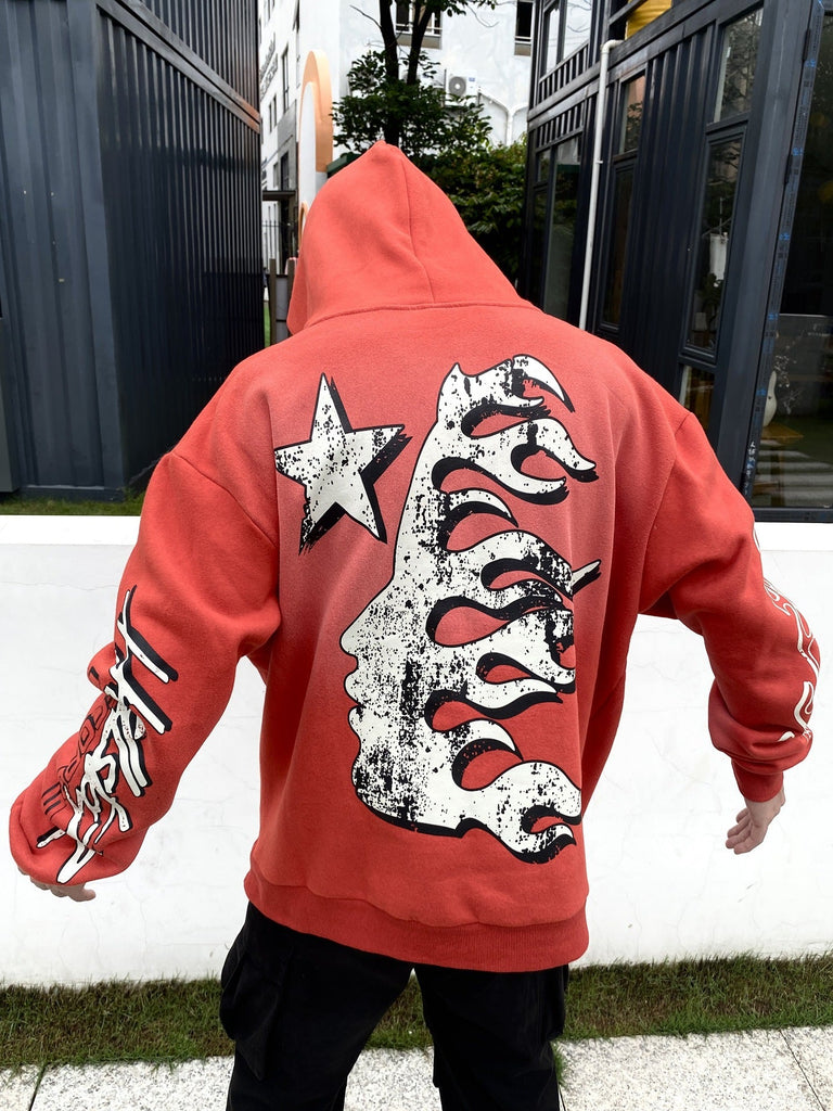 Hellstar Hoodie Retro Distressed Graffiti Loose Fleece-lined
