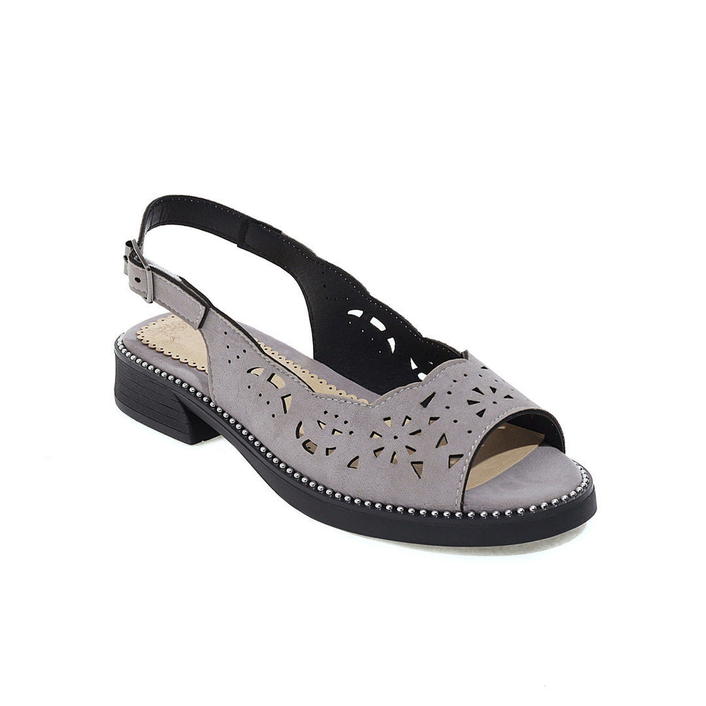 Flat Dress Sandals Summer Comfortable Low Heel Peep Toe Buckle with Cutout Sandals for Women