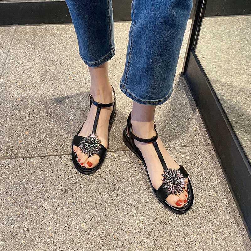Flat Dress Sandals Summer Solid Color Flat Hollow Buckle Sandals