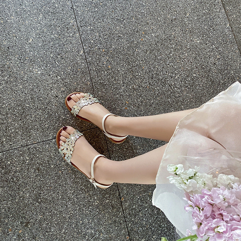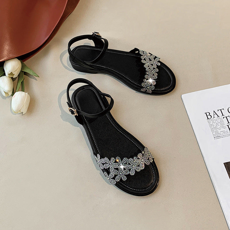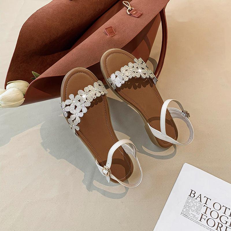 Flat Dress Sandals Summer Flat Hollowed Buckle Strap Casual Sandals